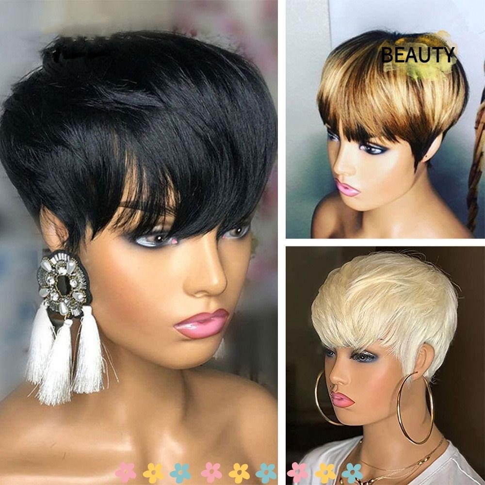 BEAU Perucas Curtas De Cabelo Humano De Moda Festa Natural
