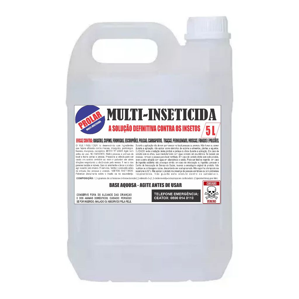 Multi-inseticida Prolar - Galão de 5 litros - Remédio para Pulgas Carrapatos Mata Mosca Veneno para Barata Formiga Inseticida em geral