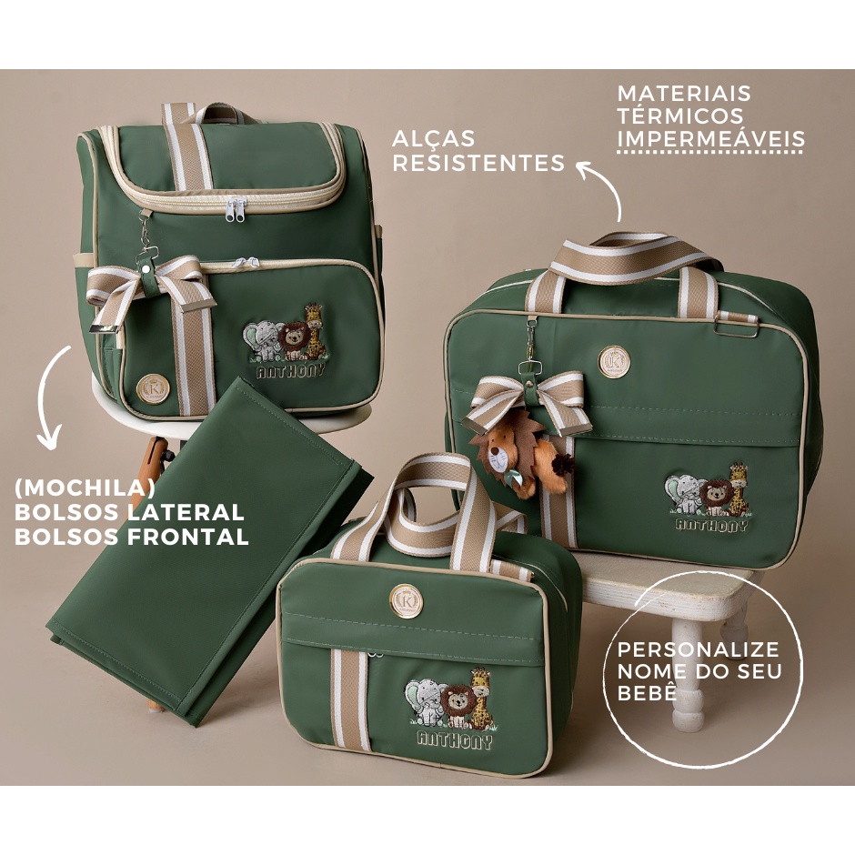 Kit Bolsa Maternidade Personalizado Safari com 4 peças mochila gg , Kadu Baby