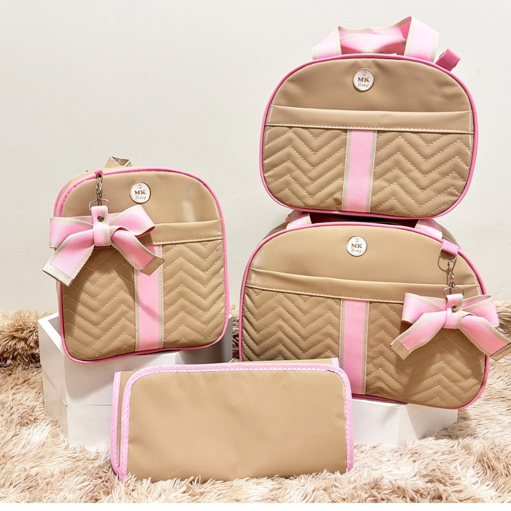 Kit Bolsa Maternidade Com Faixa e Laço 4 Peças Menina/Menino com mochila e trocador