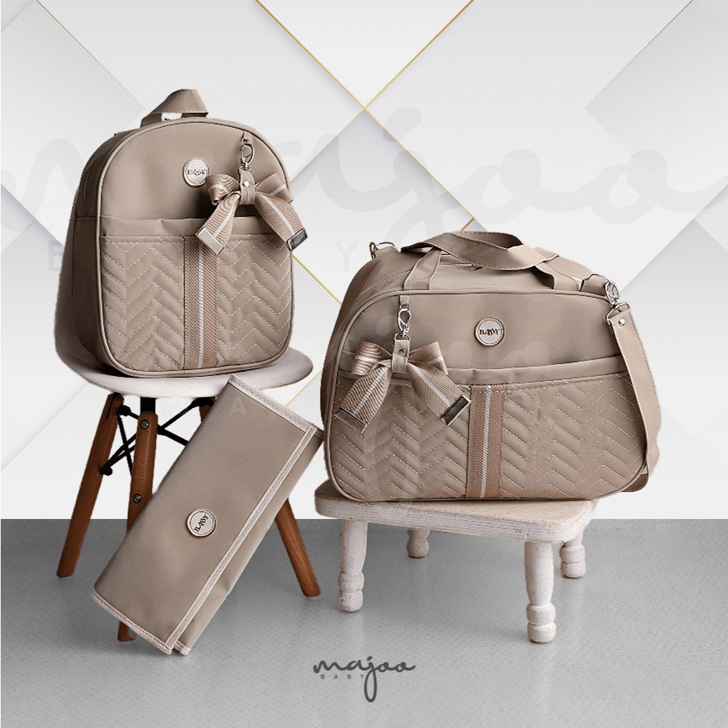 Kit Bolsas Maternidade 3 Peças com Mochila 2 em 1 Bolsa G , Bolsa P e Mochila G - Faixa luxo MZ