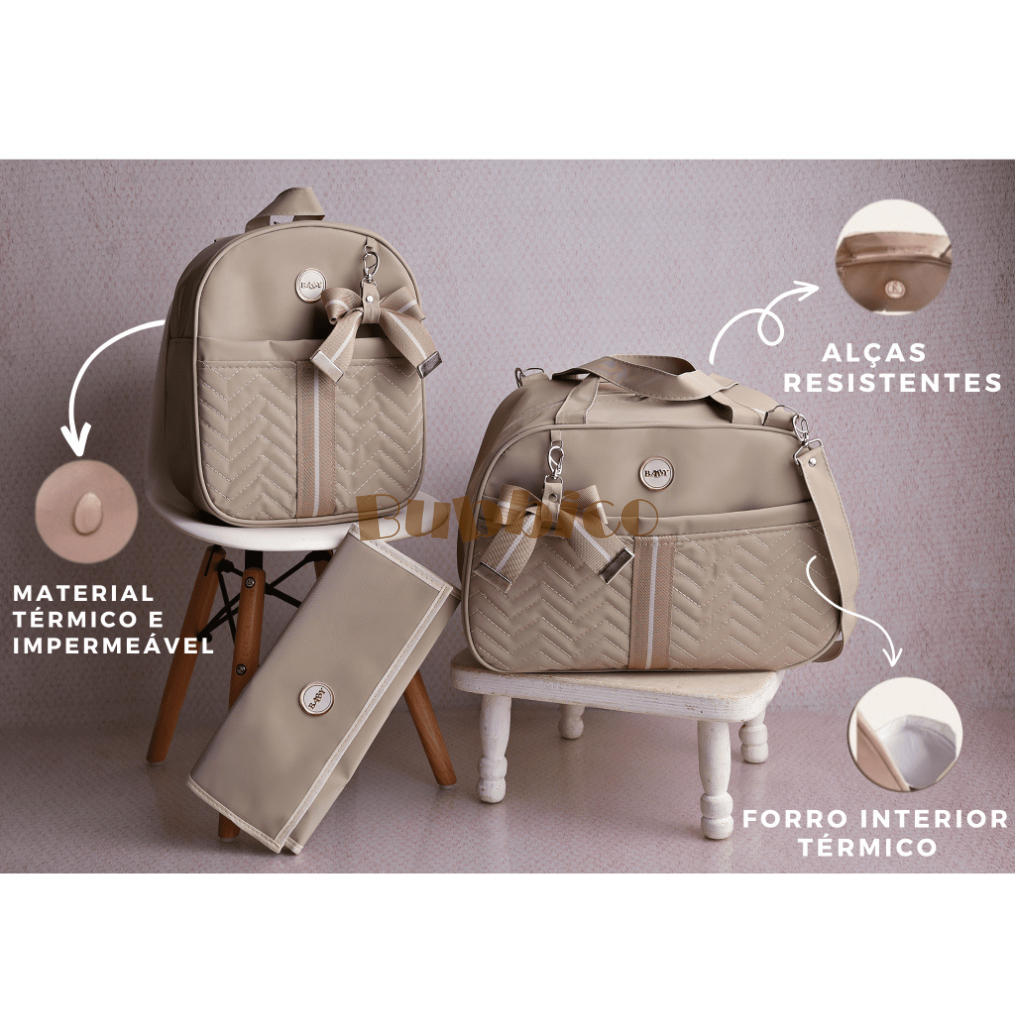 Bolsa Maternidade | Kit com 3 Peças com Faixa e Laço, Térmica e Impermeável