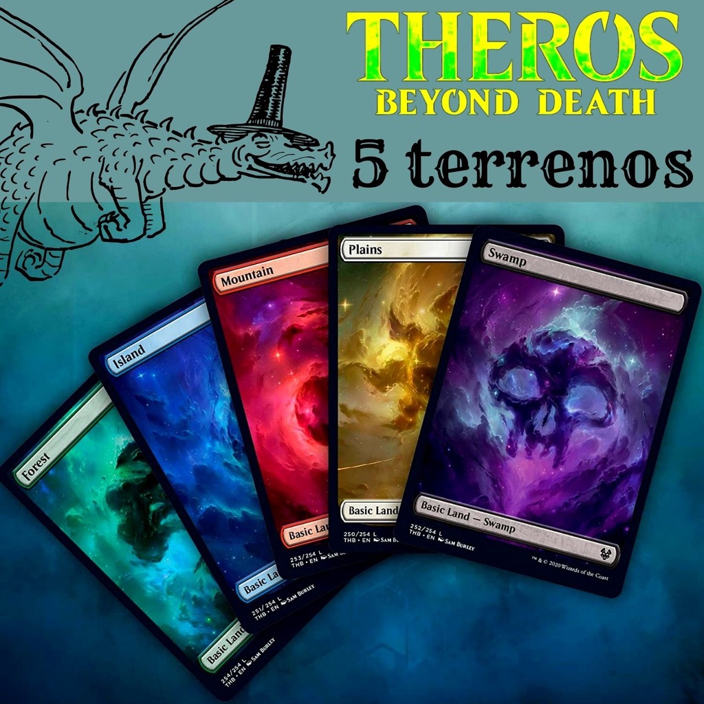 5 terrenos básicos full art (basic land) da ed Theros Além da Morte/ mana de Magic the Gathering sendo 1 de cada cor (branco/azul/preto/verde/vermelho)