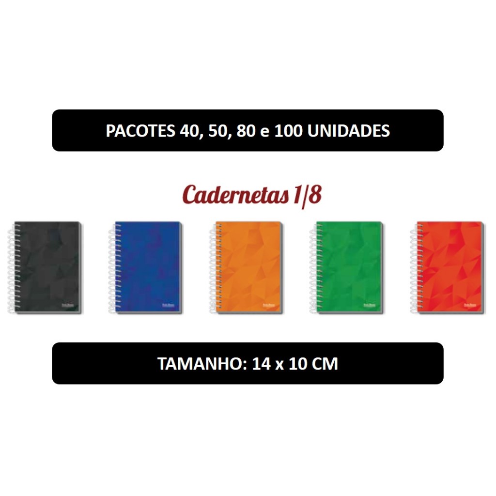 Caderneta Pacotes com 40, 50, 80 e 100 Unidades 48 e 96 Folhas Espiral 1/8 Capa Flexível (14x10cm) Pautada