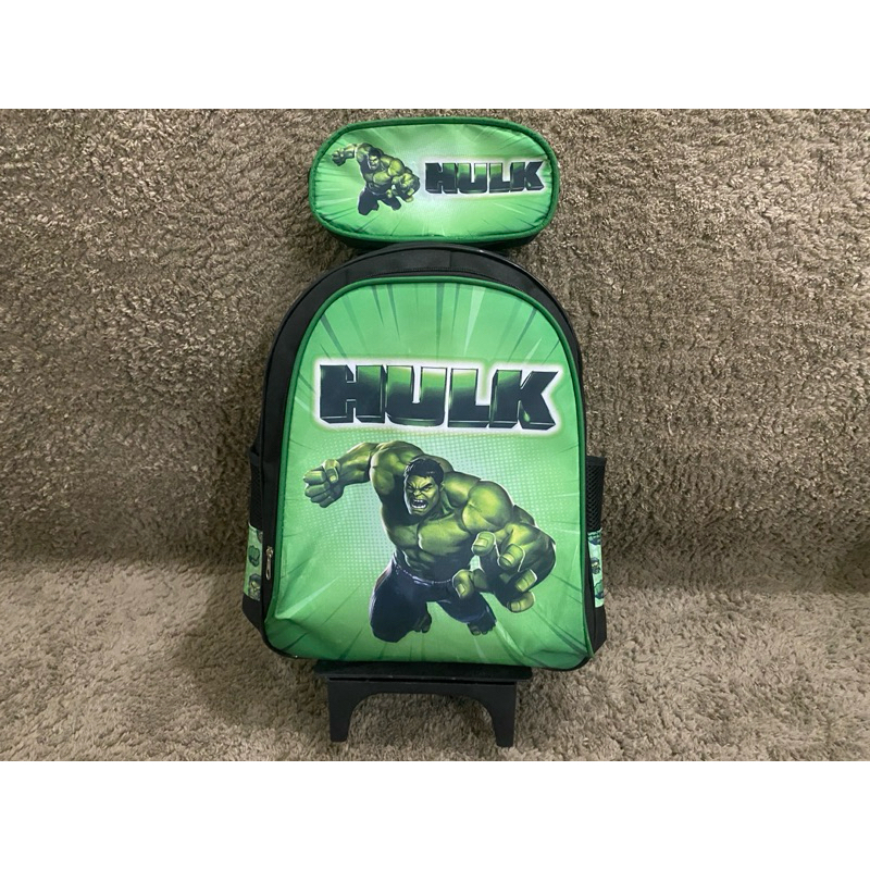 Kit De Mochila Infantil do Hulk com Rodinhas + lancheira térmica + Estojo 1 Zíper.