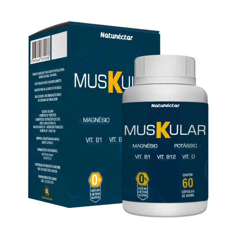 Muskular - Potássio, Vitamina D Vitamina B1 Vitamina B12 500mg 60 Cápsulas