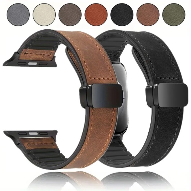 Pulseira De Couro Para Apple Watch Band Ultra 2 49mm 44mm 45mm 46mm 41mm 40 42mm Magnética De Silicone iwatch Série 10 9 8 SE 7