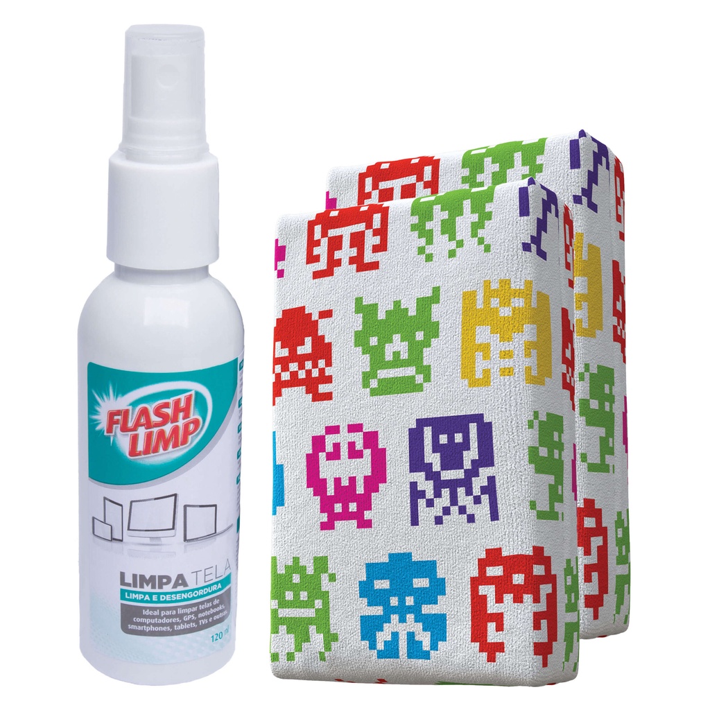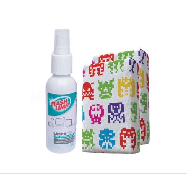 Limpa Telas Notebook Celular Monitor TV Kit Com 2 Esponjas e 1 Limpa Telas 120ML Flash Limp