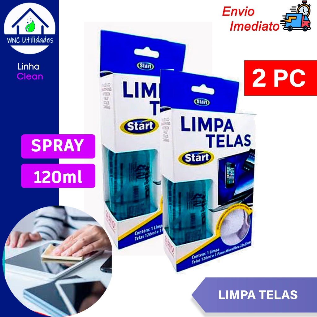 KIt 2 Limpa Telas Start 120ml + Pano Microfibra tablet TV celular notebook