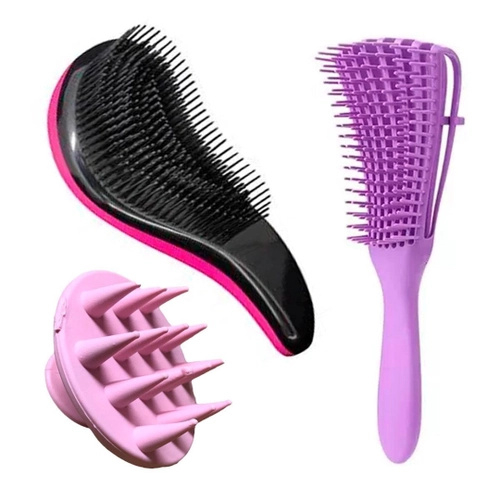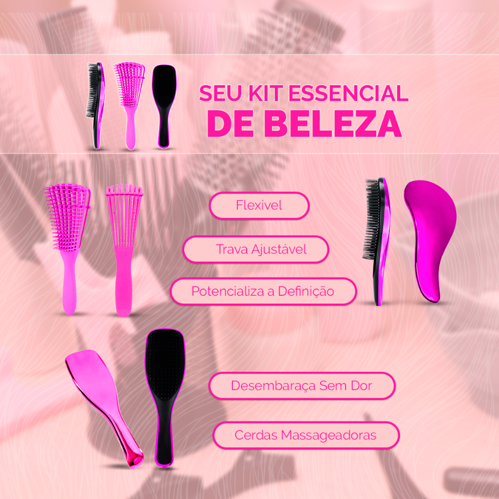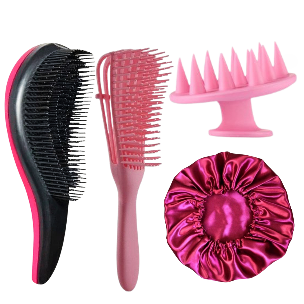 Kit 4 Peças Escova Mágica - Escova Raquete Flex - Escova Pente Polvo e Massageadora Para Couro Cabeludo Todos Os Tipos De Cabelo