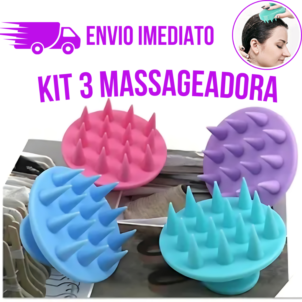 Kit 3 Escova Massageadora De Silicone Couro Cabeludo Anti-Deslizante Para Cuidado Flexivel Macio