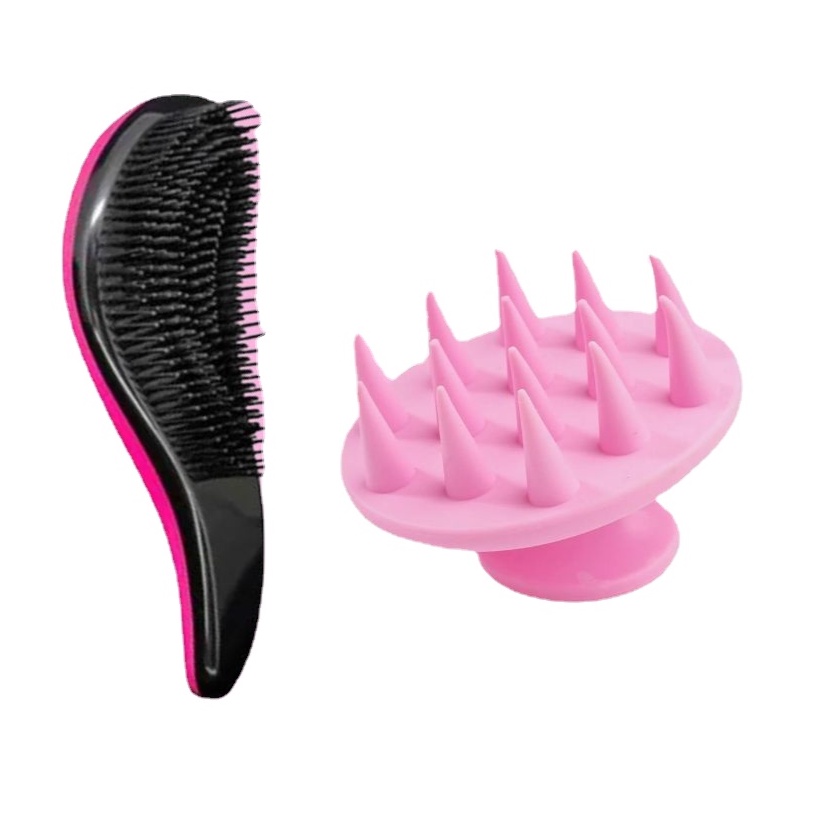 Kit Escova Polvo Escova Mágica E Escova Massageadora De Silicone Couro Cabeludo