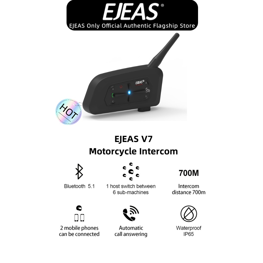 EJEAS V7 Capacete De Motocicleta Bluetooth Intercomunicador Fone De Ouvido À Prova D'água IP65 5.1 1 Pacote Para Shoei AGV KYT Yamaha Honda Forza 250