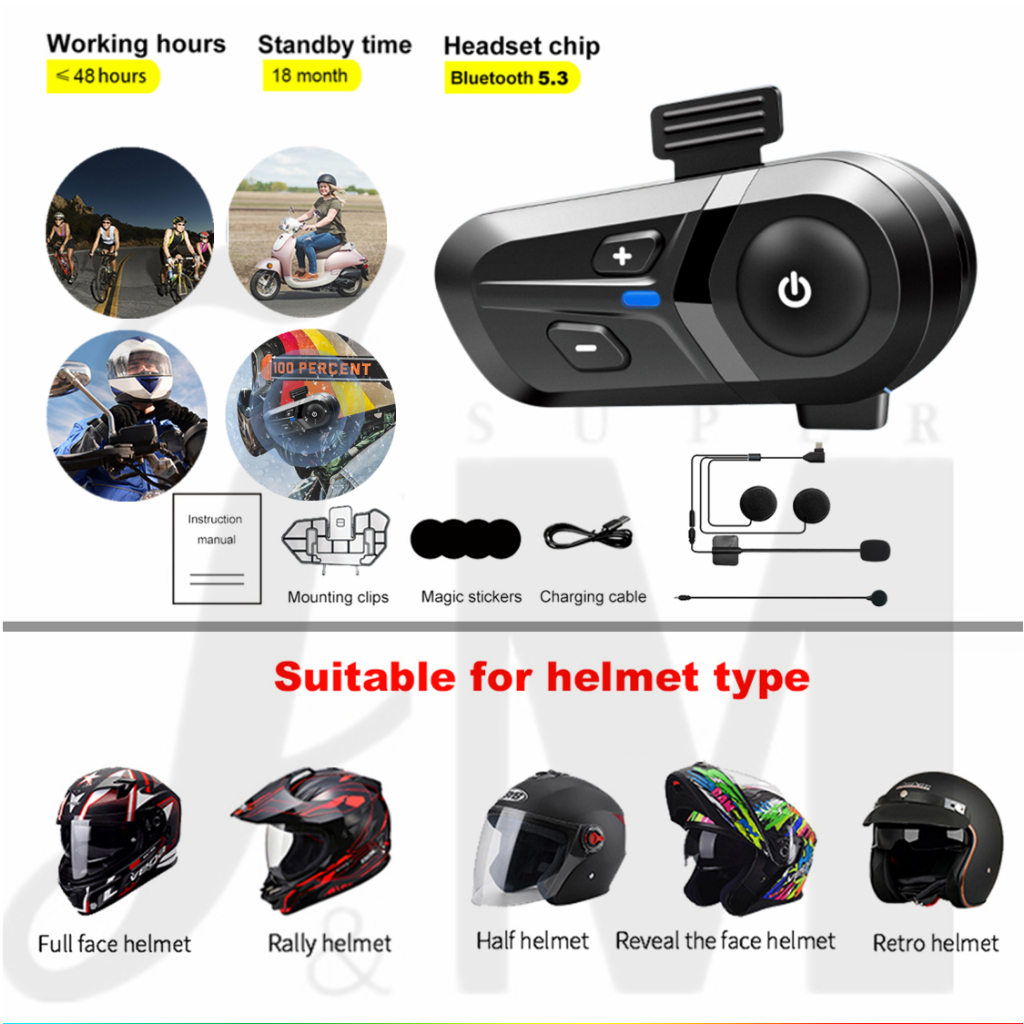 2024 Novo Intercomunicador De Capacete Sem Fio Bluetooth Para Motocicleta 500metros 1000mah Fone De Ouvido LED SD FM Motor Interfone