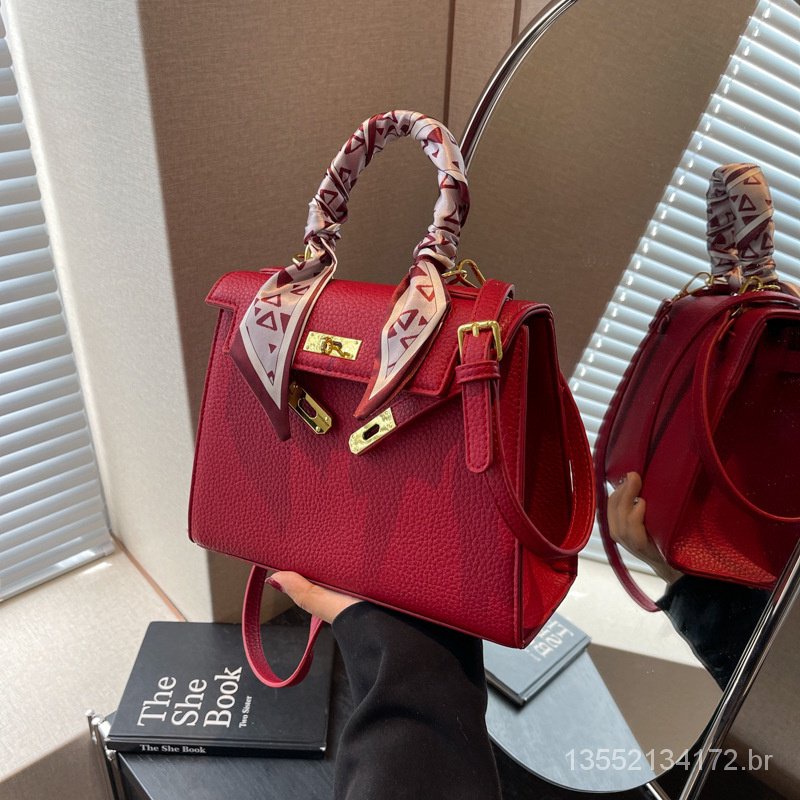 Saco vermelho feminino 2023 nova moda bolsa de casamento bolsa de noiva bolsa de alta textura Kelly bolsa de alta qualidade Sentimento de ombro único bolsa de ombro