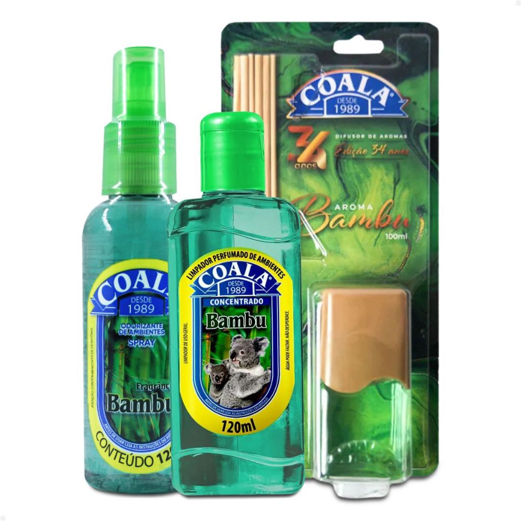 Kit Coala Aromatizantes Limpador Perfumado Odorizante Spray Difusor de Aromas Fragrância Bambu