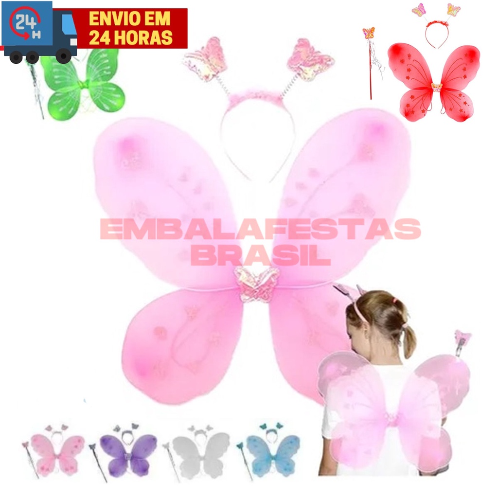 Kit Fantasia Asa de Borboleta Fada Infantil e Adulto Carnaval Festa Várias Cores