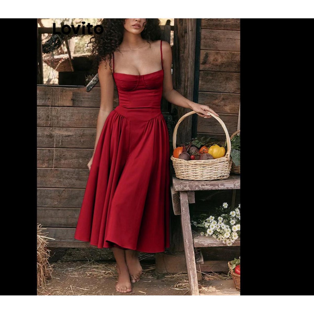 Lovito Vestido Elegante Com Estrutura Frontal Lisa E Dividida Para Mulheres LBL07212