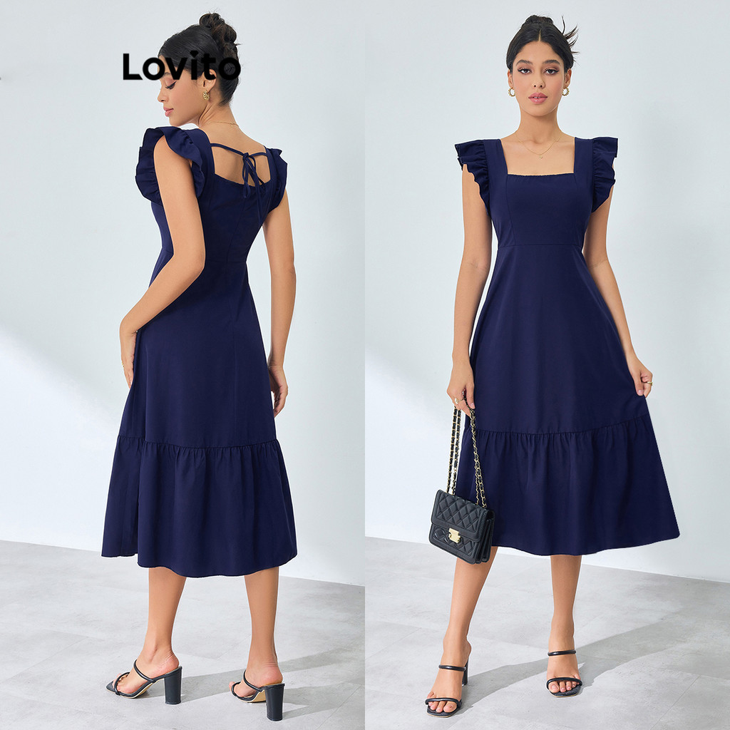 Lovito Vestido elegante com bainha com babados e estrutura lisa para mulheres LBL16064