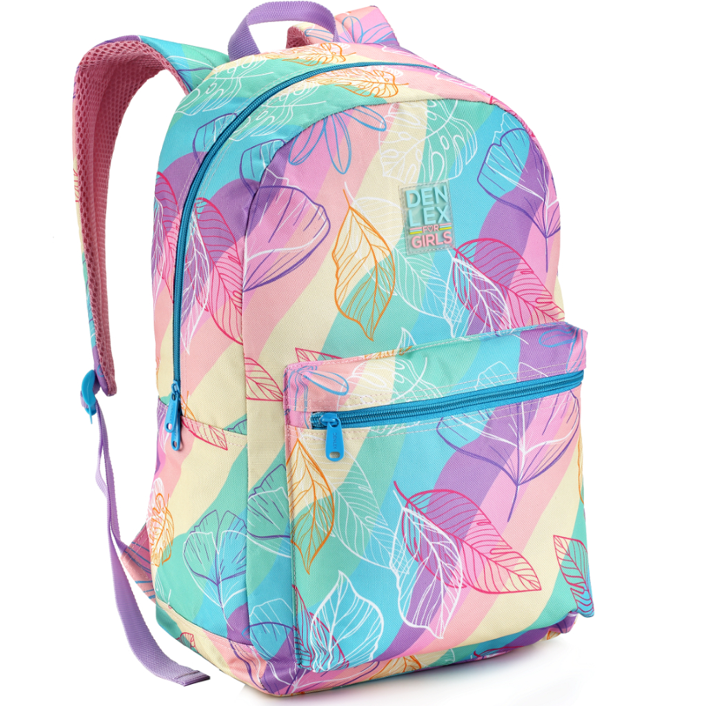 Mochila Bolsa Escolar Faculdade Passeio e Academia Grande Adulto Juvenil e Infantil Feminina Folhas Arco-íris Coração Candy Color Colorida Barata Denlex DL1586
