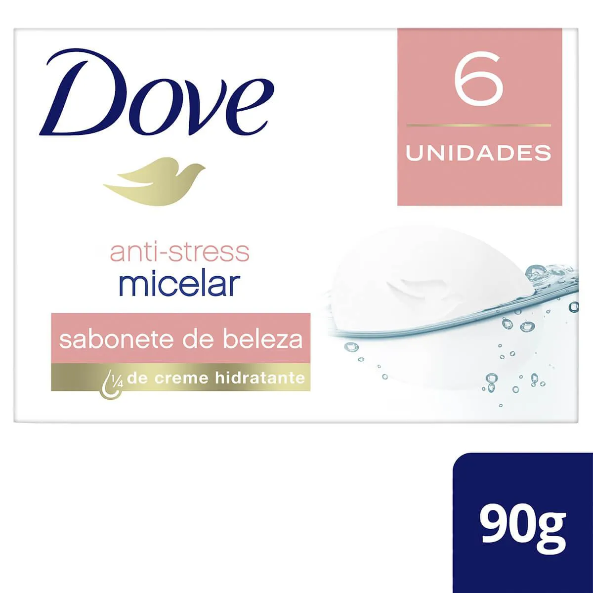 Kit Sabonete em Barra Dove Anti-Stress Micelar com 6 unidades de 90g cada