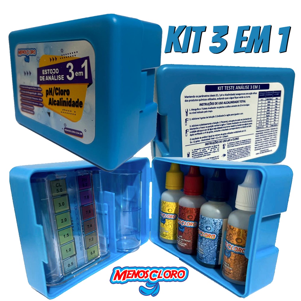 Kit Estojo Teste Medidor De Cloro E Ph e Alcalinidade Água De Piscina marca MENOS CLORO
