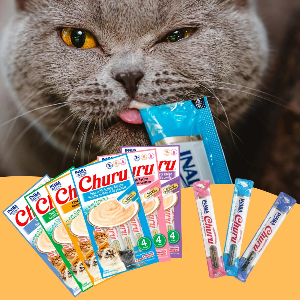 Petisco para Gatos Purê Churu Inaba Kit com 6 Pacotes Variados 56g cada