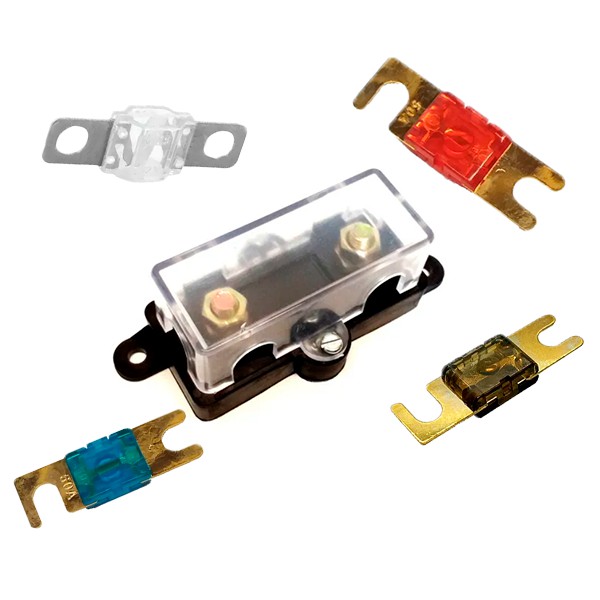 Porta Fusível Para Som Automotivo Midi e Fusível 100 Amperes Sistema Som Módulo Proteção De Bateria