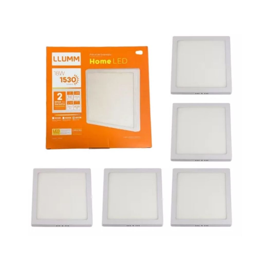 Kit 5x Painel De Sobrepor Home Led Quadrado 18W 6500K Bivolt 22,5 x 22,5Cm Llum Bronzearte
