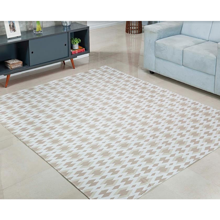 Tapete pequeno sem pelo 1,00 x 1,40 Ideal para quarto, sala, escritorio jacquard com base antiderrapante Double Bege