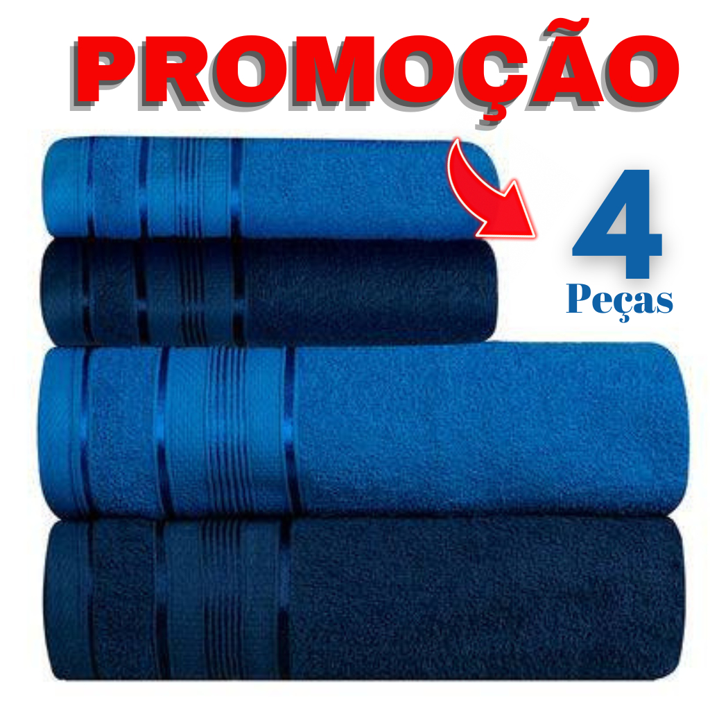 KIT 4 Toalhas - Banho e Rosto Grande Macia 100% Algodão Seca Rápido Ótima Absorção