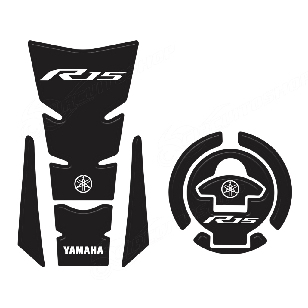 Adesivo Protetor Resinado 3D Tanque Bocal Preto ou Fibra de Carbono Moto Yzf R15