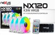 Kit Coolers Nexusgamer NX120 K3W Branco ARGB kit com 3 Hub controlador ate 10 coolers e controle