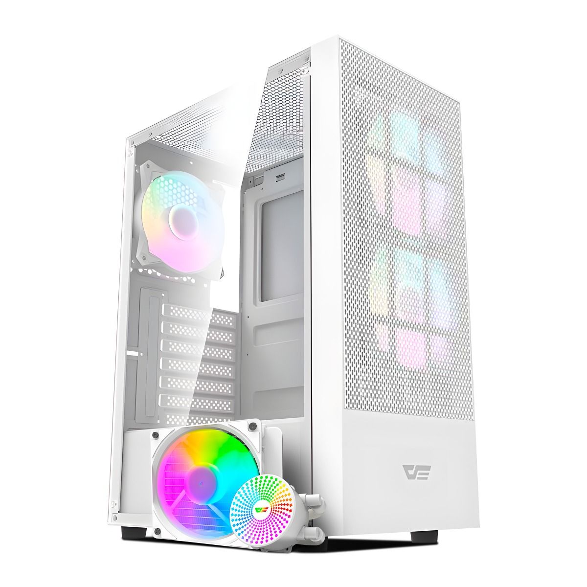 Kit Gabinete Gamer Aigo Darkflash A290 Mesh, ARGB, Lateral de Vidro, Com 3 Fans, Branco, Water Cooler Aigo Darkflash Radiant DC120, ARGB, 120mm, Branco