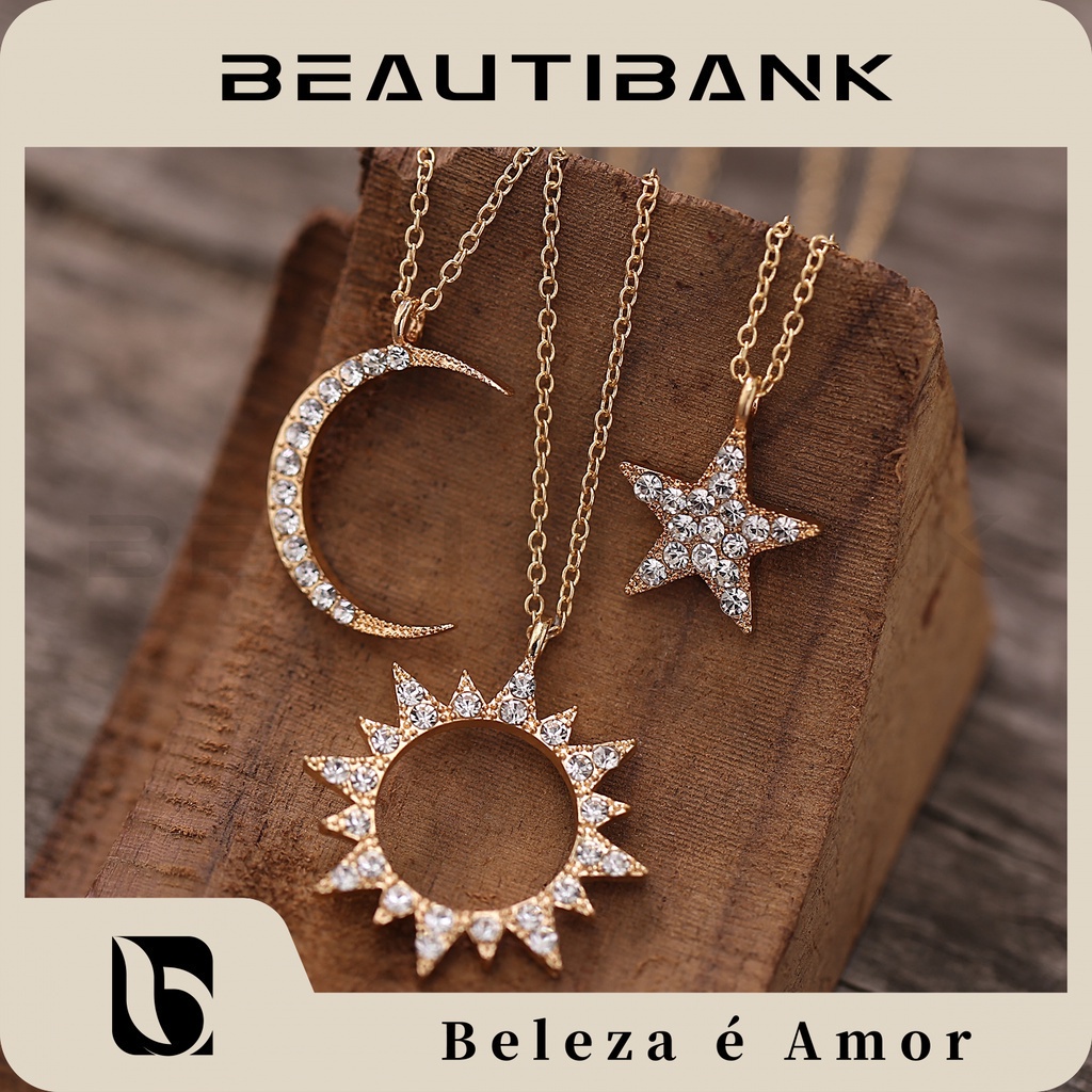 BeautiBank Colares De Cristal De Ouro Pingente Lua Meninas Estrela Da Colar De Sol Jóias