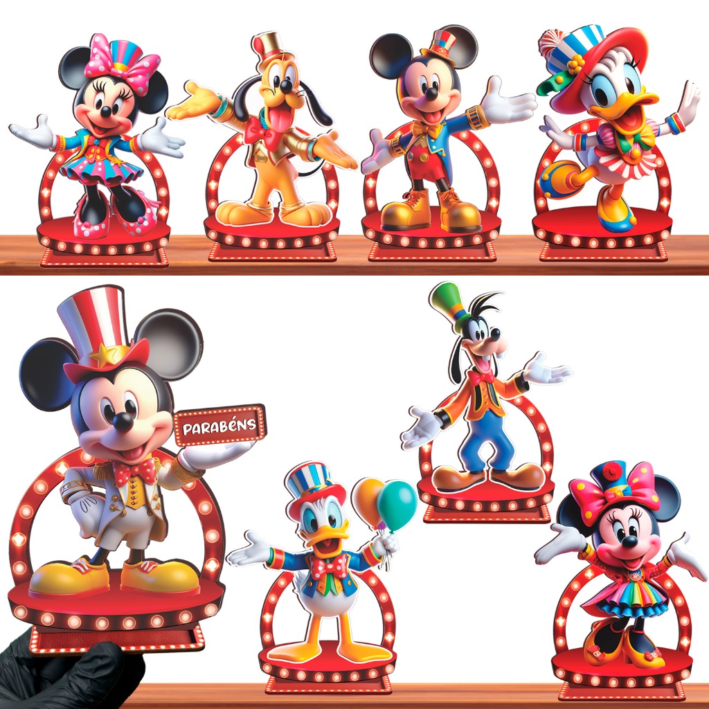 8 Totem Display Centro De Mesa Circo Do Mickey e da Minnie 20 Cm Enfeite Decoração de Aniversário