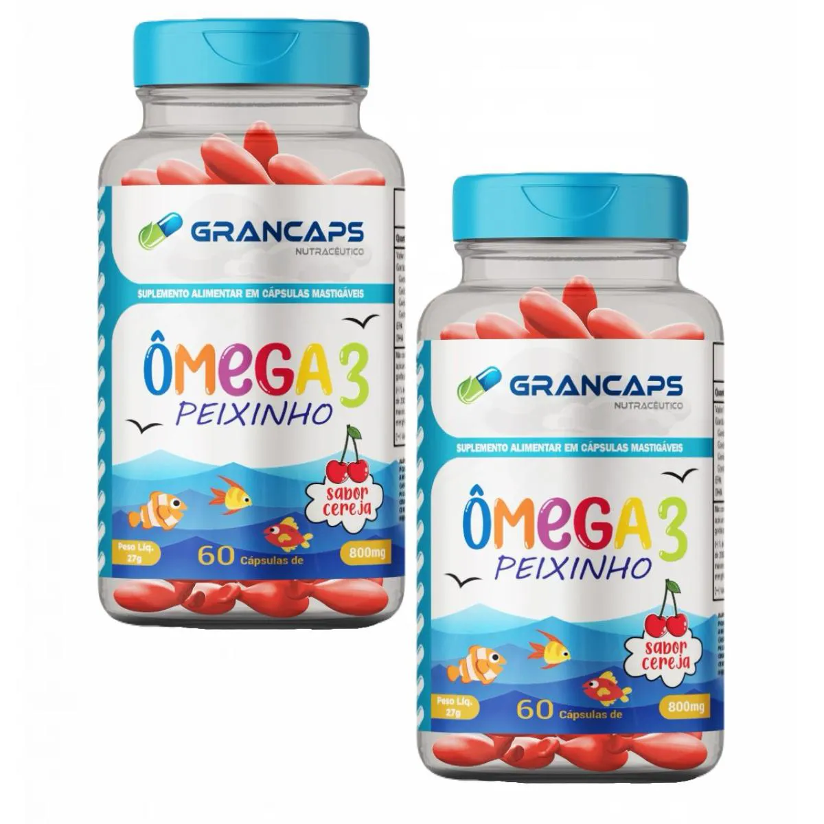 2x Ômega 3 Kids-800mg-60 Cápsulas Mastigáveis Sabor Cereja