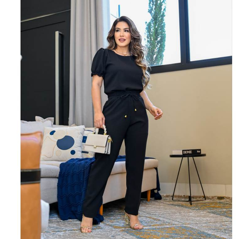 Conjunto Feminino Casual Elegante Social Scrub Blusa Calça em Linho De Algodão Com Babado Na Manga Diversas Cores Roupa Feminina Festa Barata Promoção