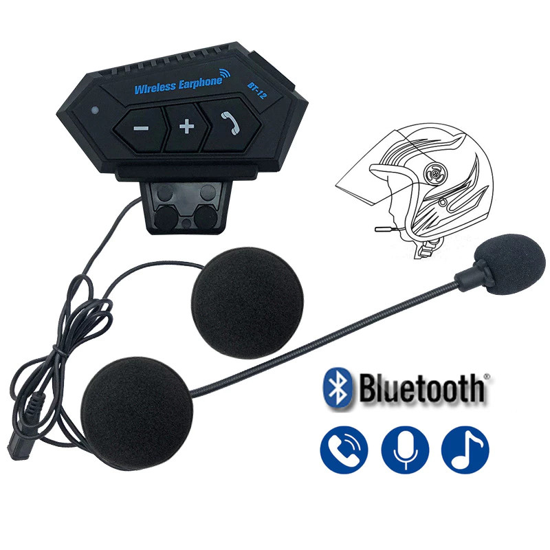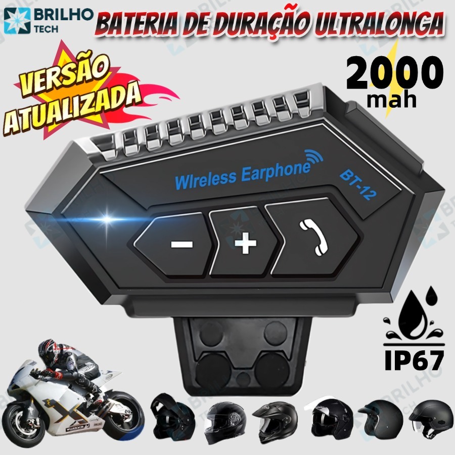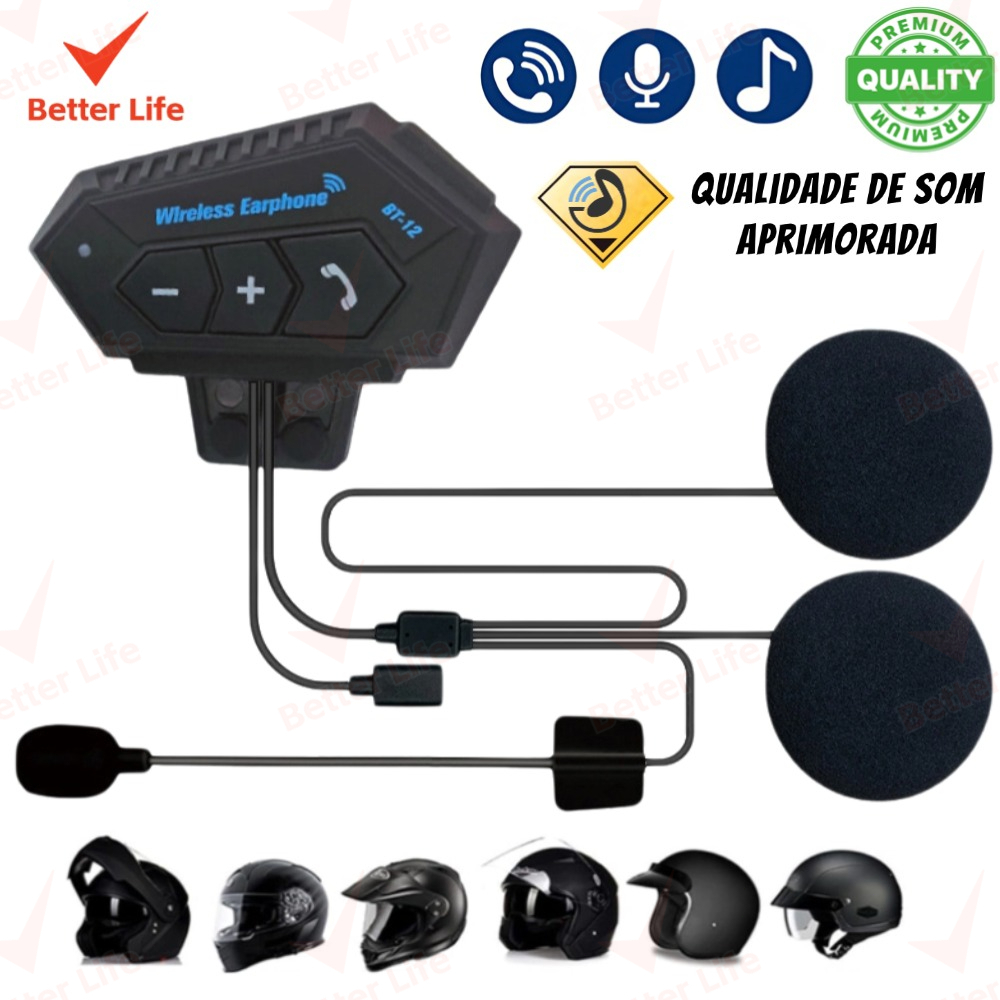 Fone De Ouvido Capacete Moto Bt-12 Bluetooth 5.0 Sem Fio Ip67 Comunicador Motoboy Motoqueiro Microfone