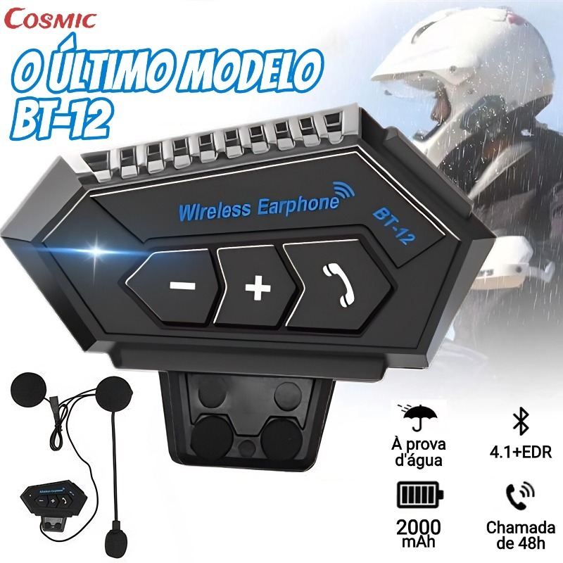 Fone De Ouvido Capacete Moto Bt-12 Bluetooth 5.0 Sem Fio Ip67 Comunicador Motoboy Motoqueiro Microfone - CLICK