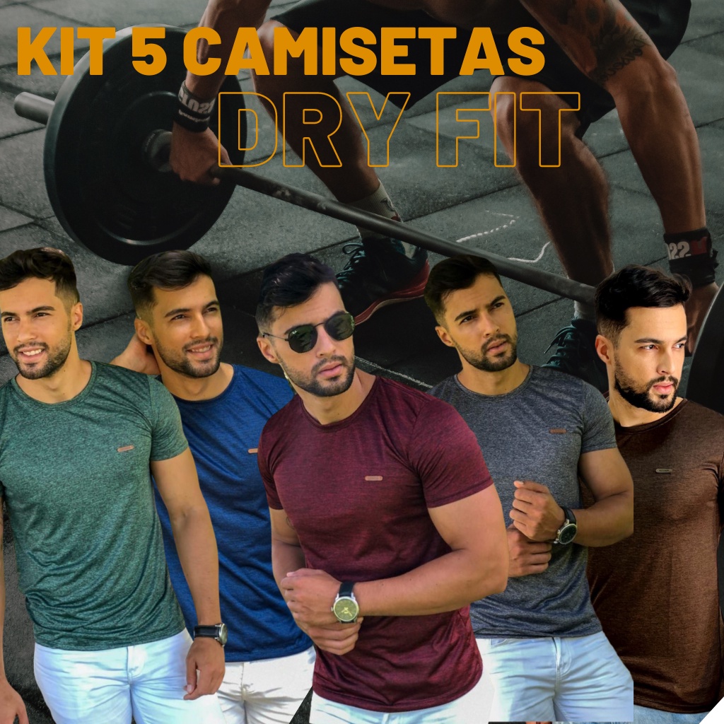 KIT 5 Camiseta Dry Fit Masculina Academia Treino, Casual e ótima para corrida.