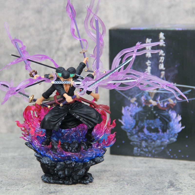 25cm Trompete De Uma Peça Três Cabeças E Seis Braços Roronoa Zoro Figurine Anime Pvc Modelo Estátua De Boneca Colecionável Presentes De Brinquedo