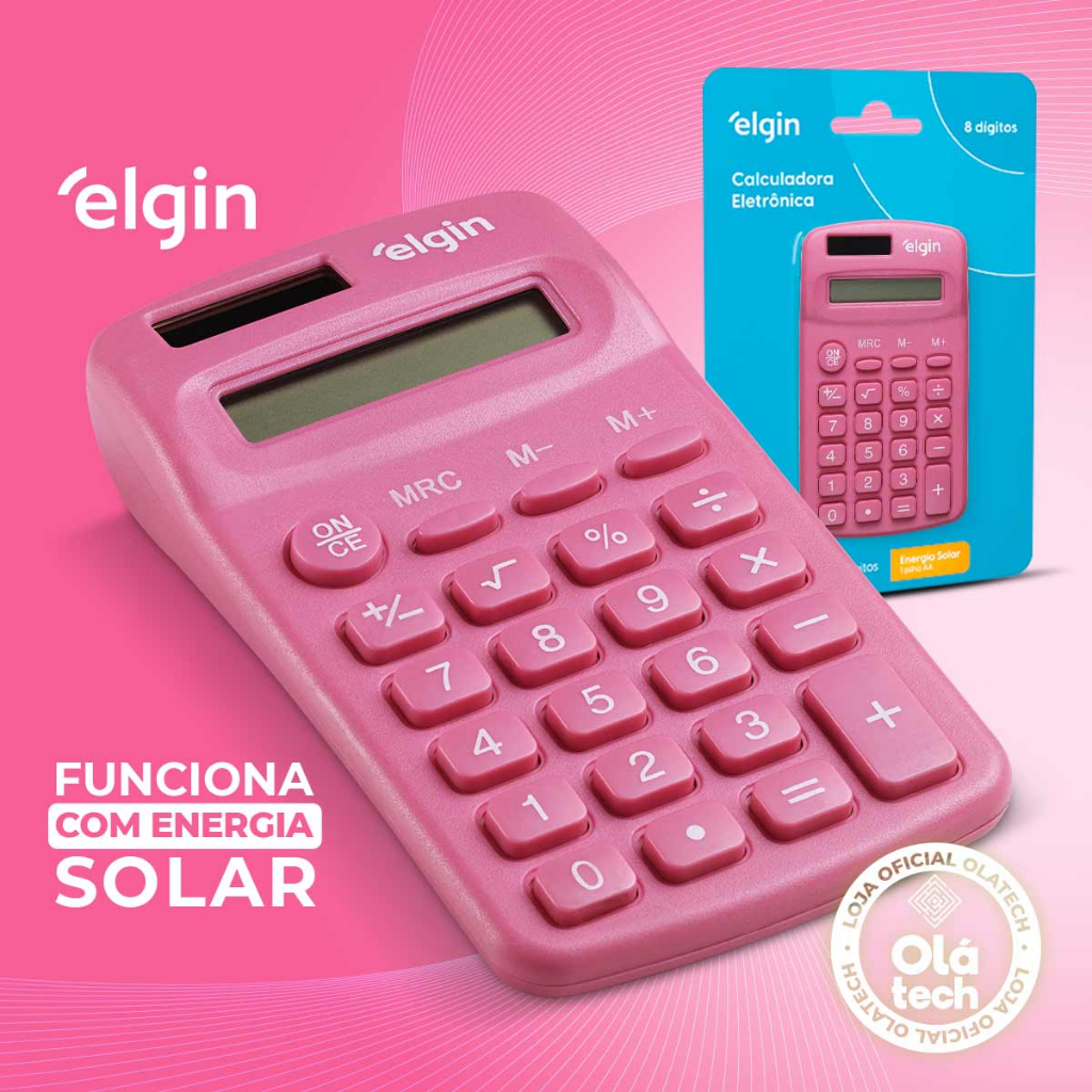 MINI CALCULADORA DE BOLSO 08 DÍGITOS ELGIN ORIGINAL ROSA PINK PEQUENA COMPACTA E PORTÁTIL COLORIDA
