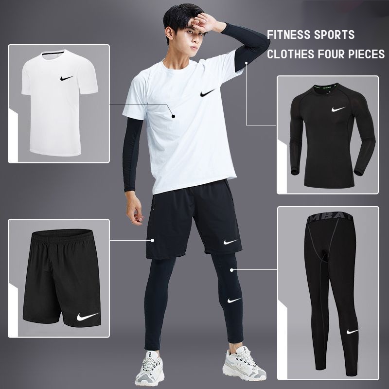 Esportes Traje Masculino Equipamento De Corrida Ginásio Treino De Basquetebol Velocidade Seco Noite Conjunto 4 Peças
