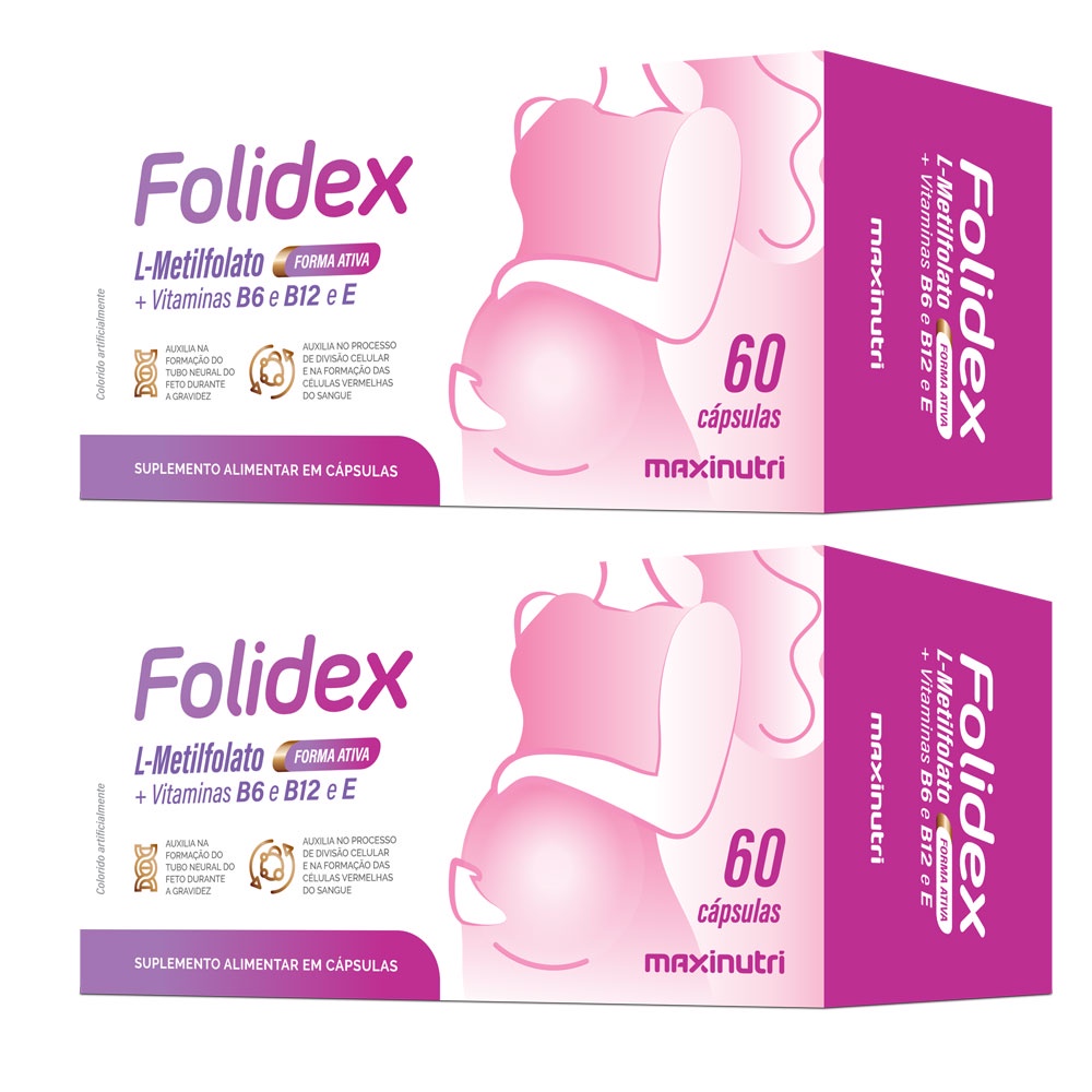Kit 2 Folidex Metilfolato 420mcg com Vitaminas B6 B12 e Vitamina E 60 Cápsulas Maxinutri
