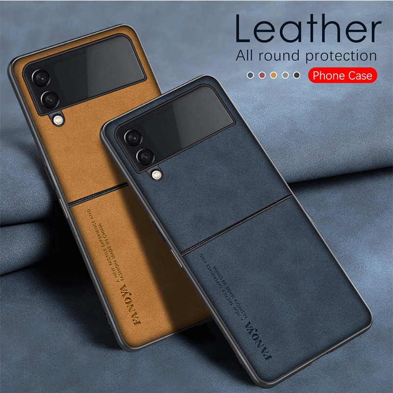 Textura De Luxo Capa Traseira Em Couro TPU À Prova De Choque Para Samsung Z Flip 5 4 flip5 flip4 5G