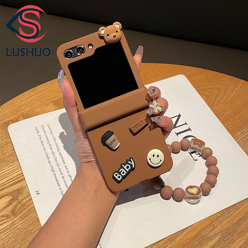 Capa Traseira Castanha Rígida LUSHUO Para Samsung Galaxy Z Flip 5 3 Em 1 PC Com Bracelete Flip5 ZFlip5 ZFlip 5