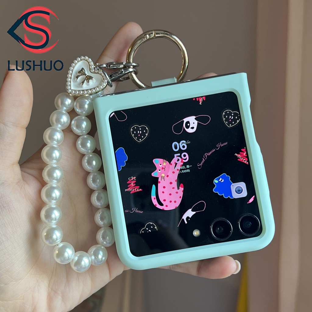 Capa Traseira Rígida Para PC LUSHUO Samsung Galaxy Z Flip 5 Com Proteção De Vidro E Suporte De Anéis Pulseira Flip5 ZFlip5 ZFlip 5