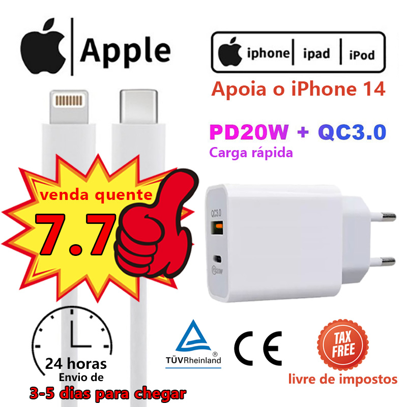 Kit Carregador De iPhone Fonte + Cabo Carregamento Rápido PD 20w+QC3.0 Porta Carregador Dual USB Tipo C Para iPhone 11/12/13/14 Certificação CE TUV teste