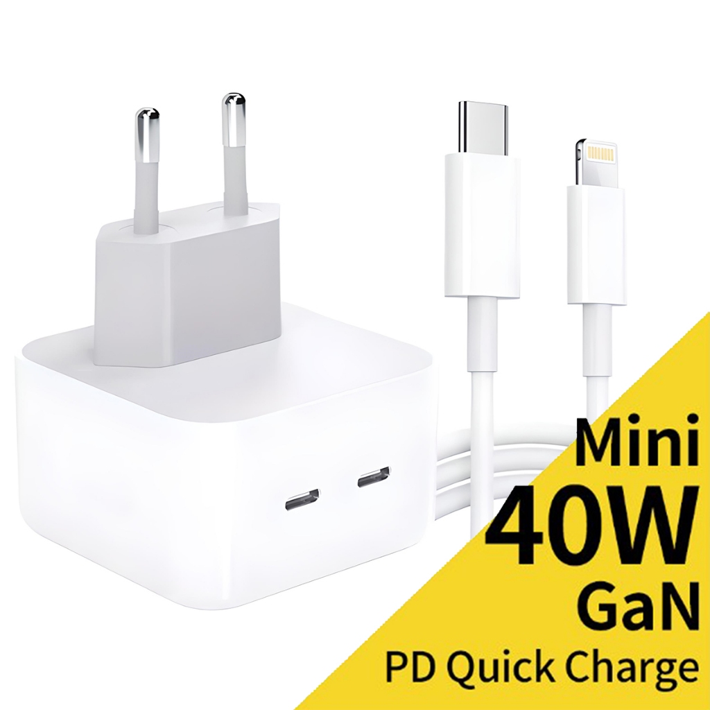 Carregador 40W Com Dupla Porta USB-C Tipo-C Para iPhone e Android H'Maston